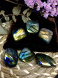 Labradorite - Highly mystical, protective & brings in light. Forms a barrier to negative energies. Releases fears & insecurities. Gives faith in self & trust in universe. Stone of transformation & can bring your dreams into reality.