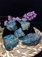 Blue apatite - connects to a higher level of spiritual guidance. it facilitates speaking and enhances group communication. Opens the throat chakra and heals the heart and emotional disease. Improves concentration and memory skills - good for study purposes. Aids in time management when working on projects.