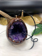 Handmade ceramic amethyst geode LED Lamp with metal stand
