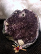 The amethyst of devotion was found in Brazil in 2022, she has multiple spaces for floral or nature offerings. This piece has a sacred, soothing energy and encourages reverence for nature and mother earth. This beauty has been popular as an addition to tables at weddings and as inclusions at nature-based gatherings and meditation retreats.