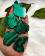 Malachite - amplifies energies, protects the wearer from harm. beneficial for soaking up pollutants in the air and body, and therefore should be cleansed regularly. Encourages us to step outside our comfort zone and take a chance. Helpful for breaking ties from the past. A very powerful stone for change.