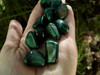 Malachite - amplifies energies, protects the wearer from harm. beneficial for soaking up pollutants in the air and body, and therefore should be cleansed regularly. Encourages us to step outside our comfort zone and take a chance. Helpful for breaking ties from the past. A very powerful stone for change.